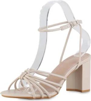 Damen Riemchensandaletten Blockabsatz Basic Party Schuhe 216960 Beige 37