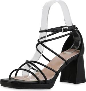 Damen Riemchensandaletten Blockabsatz Plateau Vorne Trendy Schuhe 216818 Schwarz 38