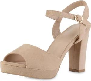Damen High Heels Sandaletten Party Blockabsatz Schuhe Elegante Strass Absatzschuhe Abendschuhe 211348 Beige 39