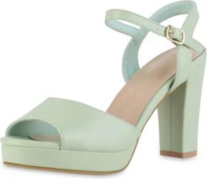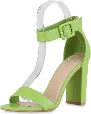 Damen Riemchensandaletten Sandaletten Elegante Freizeit Schuhe Blockabsatz Absatzschuhe Basic Riemchenschuhe 211508 Hellgrün 41