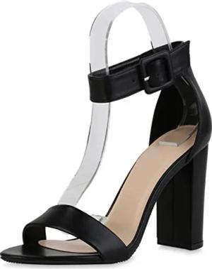 Damen High Heels Sandaletten Party Schuhe Blockabsatz Freizeitschuhe Strass Absatzschuhe Abendschuhe 211246 Schwarz 38