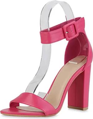 Damen Riemchensandaletten Sandaletten Elegante Freizeit Schuhe Blockabsatz Absatzschuhe Basic Riemchenschuhe 211509 Fuchsia 36