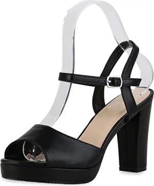 Damen Riemchensandaletten Sandaletten Elegante Plateau Vorne Schuhe Leder-Optik Blockabsatz Absatzschuhe 211500 Schwarz 39