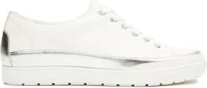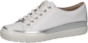 Comfort Damen Sneaker flach aus Leder mit Reißverschluss, Weiß (White/Silver), 36 EU