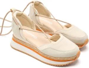 Sneaker mit offener Plateausohle aus Leder und Raphia Chittenden, beige, 36 EU