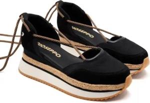 Sneaker mit offener Plateausohle aus Leder und Raphia Chittenden, Schwarz, 36 EU