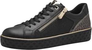 Damen Sneaker flach mit Reißverschluss Freizeit, Schwarz (Black Comb), 38 EU