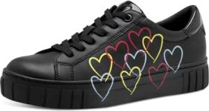 Damen Sneaker mit Plateau und mehrfarbigem Herz Muster 2-23711-44, Größe:41 EU, Farbe:Schwarz