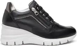 NeroGiardini E512942D Handschuh Schwarz Sneakers für Damen aus Leder mit hohem Keilabsatz, Schwarz , 36 EU