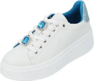 Sneaker Damen Yellar by Sila Sahin - Elegante Turnschuhe mit Schmuckapplikationen - Plateau-Sohle - modisch und bequem Weiß/Blau UK4,5 - EU37