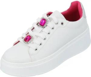 Sneaker Damen Yellar by Sila Sahin - Elegante Turnschuhe mit Schmuckapplikationen - Plateau-Sohle - modisch und bequem Weiß/Pink UK4,5 - EU37