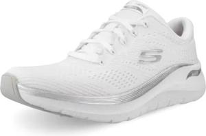 Arch Fit 2.0 Glow The Distance-Sneaker für Damen, Weißes Netzgewebe mit silberfarbenem Rand, 36 EU