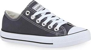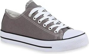 Sportliche Damen Sneakers Metallic Schnürer Sneaker Low Spitze Turn Blumen Denim Stoff Flats Schuhe 41217 Grau Weiss 36 Flandell