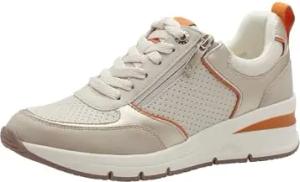 Comfort Damen Plateau Sneaker mit Reißverschluss Low Top, Beige (Beige Comb), 38 EU