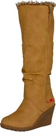 Ital Design Damenschuhe Stiefel Keilstiefel, SP275-, Kunstleder, Camel, Gr. 38