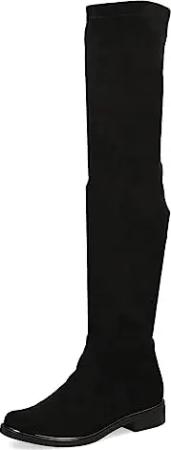 Damen Overknee Stiefel Kleiner Absatz Vegan, Schwarz (Black Stretch), 38.5 EU
