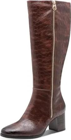 Stiefel, Blockabsatz, Businessstiefel, Langschaftstiefel mit Zierschnalle