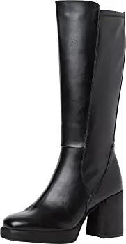 Damen Hohe Stiefel mit Absatz Kniehoch mit Blockabsatz, Schwarz (Black), 37 EU