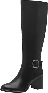 Damen Hohe Stiefel mit Absatz Kniehoch mit Schnalle, Schwarz (Black), 36 EU