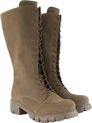 Damen große Größen Übergrößen Plus Size Lederstiefel, XXL-Schaft, Weite H moos 42 834157630-42
