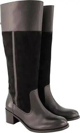 Damen große Größen Übergrößen Plus Size Lederstiefel, XXL-Schaft, Zipper, Veloursleder, Weite H schwarz 43 834204100-43