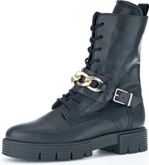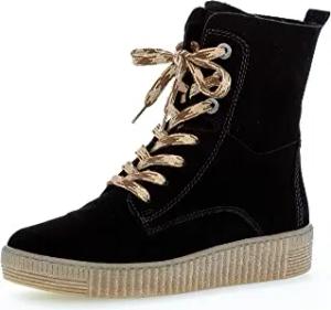 Damen Combat Boots, Frauen Stiefeletten,Wechselfußbett,Komfortable Mehrweite (H),uebergangsstiefel,schw(Flausch/Gold),38 EU / 5 UK