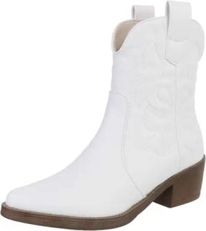 Ital Design Damenschuhe Stiefeletten Western- & Bikerboots, DES682-, Kunstleder, Weiß, Gr. 37