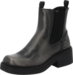 Stiefeletten Damen Misoshi - modische Boots - leicht gefütterte Stiefel mit Blockabsatz - bequeme Ankle-Boots Schwarz/Silber UK6 - EU39