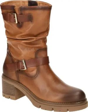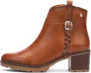 Damen Stiefelette Leder Schnalle Blockabsatz Malaga W6W-8622C1, Größe:41 EU, Farbe:Braun