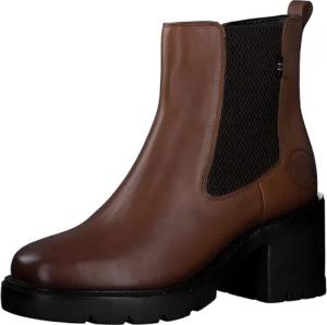 Damen Chelsea Boots aus Leder mit Blockabsatz, Braun (Cognac), 38 EU