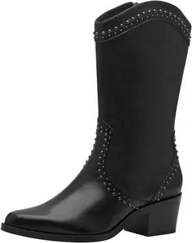 Damen Boots mit Absatz Leder; BLACK/schwarz; 38 EU