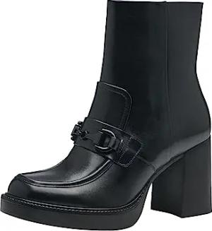COMFORT Damen Stiefeletten mit Absatz aus Leder Blockabsatz, Schwarz (Black Nappa), 36 EU