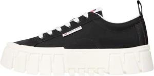 Damen Flatform Sneaker Nylon mit Plateau, Schwarz (Black), 38