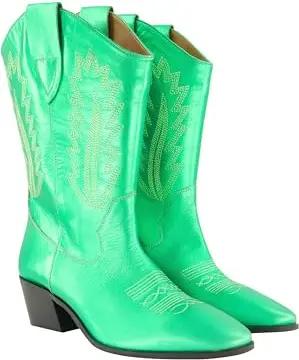 Damen große Größen Übergrößen Plus Size Leder-Cowboystiefel, XL-Schaft, Metallic-Optik, Weite H smaragd 38 834252456-38