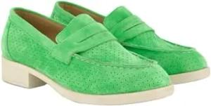 Damen große Größen Übergrößen Plus Size Leder-Loafer, Veloursleder, Textilfutter, Blockabsatz Sommer grün 40 826585455-40