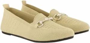 Damen große Größen Übergrößen Plus Size Strick-Ballerinas, Ziersteine, Wechselfußbett, Weite H Mandel 38 838572607-38