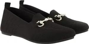 Damen große Größen Übergrößen Plus Size Strick-Ballerinas, Zierspange, Wechselfußbett, Weite H schwarz 38 838563100-38