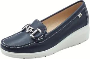 V11661 Nappa Ecru Klassische Mokassins mit Keilabsatz für Damen aus Leder, blau, 40 EU