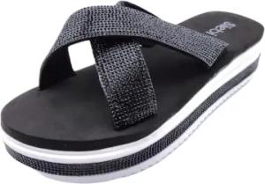 Nizza Modische Strandschuhe Badeschuhe Pantoletten mit Plateau Damen: Farbe: Schwarz | Größe: 41