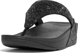 Women's Lulu Glitter Flip Flops, Toe-Post Sandals, Comfortable with Natural Arch Support - Black Glitter - 7 UK