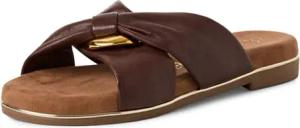 Damen Pantoletten aus Leder mit Zierschnalle, Braun (Mocca), 38 EU