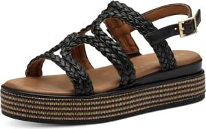 Damen Sandalen mit Keilabsatz mit Verstellbarem Riemen Vegan, Schwarz (Black Comb), 39 EU
