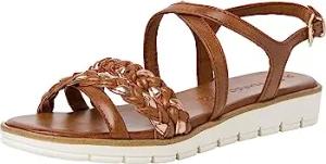 Damen Sandalen mit Keilabsatz mit Verstellbarem Riemen Vegan, Braun (Cognac Comb), 41 EU