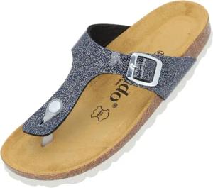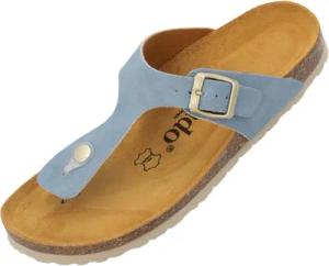 Damen Zehentrenner Orion - Modische Pantoletten mit Natur Kork-Fussbett - mit Sohle aus feinstem Veloursleder - bequeme Sandalen für Frauen Blau UK3,5 - EU36