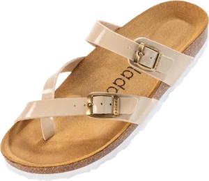 Pantoletten Damen Cres Lack – bequeme Sandalen Made in Spain - Hausschuhe mit dampfendem Kork-Fußbett - modische Sommerschuhe Cream UK7 - EU40