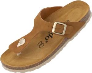 Pantoletten Damen Kos Avelina - elegante Sandalen Made in Spain - bequeme Hausschuhe mit Kork-Fußbett - modische Sommerschuhe Braun UK3,5 - EU36