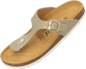 Kos BEGS by Sila Sahin Damen Pantoletten - modische Sandalen mit Natur Kork-Fussbett - bequeme Sandalen mit extra großer Schnalle Gold Metallic UK4,5 - EU37