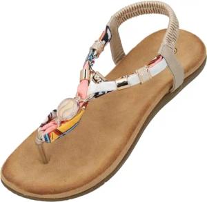 Sandalen Damen Gyapon - bequeme Sandaletten - modische Sommerschuhe - elegante Pantoletten Beige UK7 - EU40