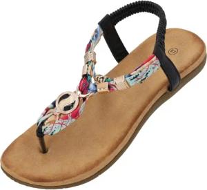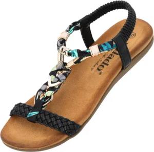 Sandalen Damen Thido - elegante Pantoletten - bequeme Sommerschuhe mit elastischen Riemen - modische Hausschuhe Schwarz UK5,5 - EU38