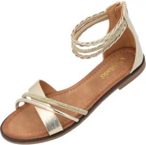 Sandalen Damen Chritina - elegante Sandaletten - bequeme Sommerschuhe - modische Pantoletten Gold UK3,5 - EU36